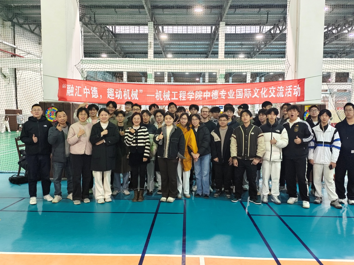 2025年11月28日下午15:00,机械中德专业在体育活动中心成功举办了以“融汇中德,趣动机械”为主题的国际文化交流活动。活动由学院机械中德工作小组组织,参与学生包括机械中德22、23、24级学生及德国富特旺根应用技术大学交流生,本次活动旨在通过跨年级、跨国籍同学的共同参与,促进文化交融、学业互促和友谊共进。