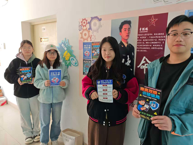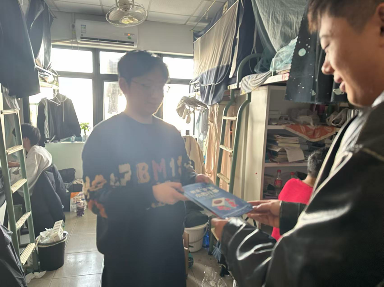 为提升宣传的亲和力与针对性,支部党员分为男生组与女生组,分别走进对应宿舍楼开展宣传。走访中,党员们发放海报提醒同学们牢记“不听、不信、不转账”原则,保护好个人财产与信息安全。许多同学驻足聆听,积极提问,交流氛围融洽热烈。