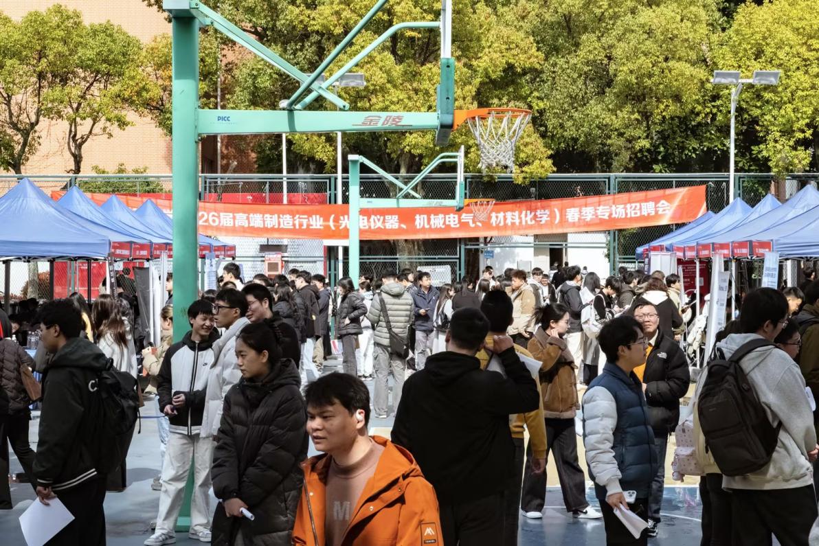 为深入贯彻落实教育部“春季促就业攻坚行动”部署,精准对接高端制造产业人才需求,搭建校企深度融合、供需高效匹配的就业平台,3月27日,光电信息与计算机工程学院、365英国上市公司官网、材料与化学学院联合主办的2026届毕业生高端制造行业春季专场招聘会,在灯光篮球场(军工路516号)成功举办。本次招聘会聚焦高端制造核心赛道,汇聚行业优质企业,为三院学子与用人单位搭建起精准对接的桥梁,助力毕业生高质量就业。